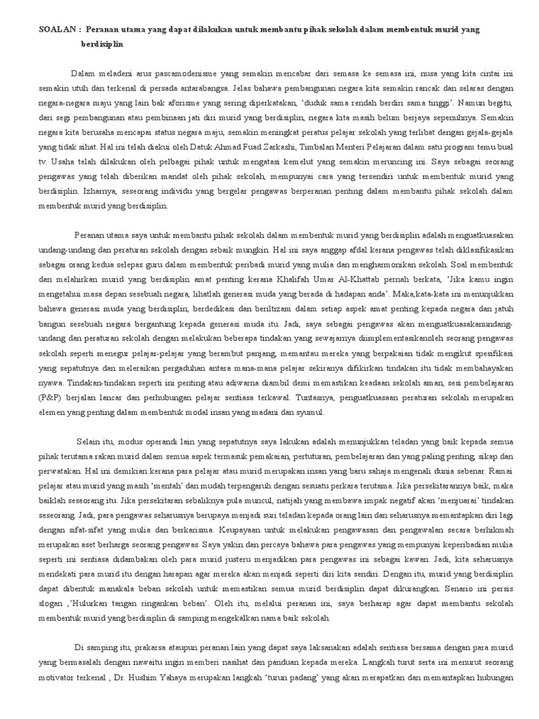 Perdana Menteri Malaysia Datuk Seri Najib Tun Abdul Razak amat cakna dalam menggembleng usaha untuk membentuk akhlak. Contoh karangan spm remaja berdisiplin. Apa-apa yang dipesan sudah tidak berguna lagi jika baru mahu membentuk sahsiahnya.