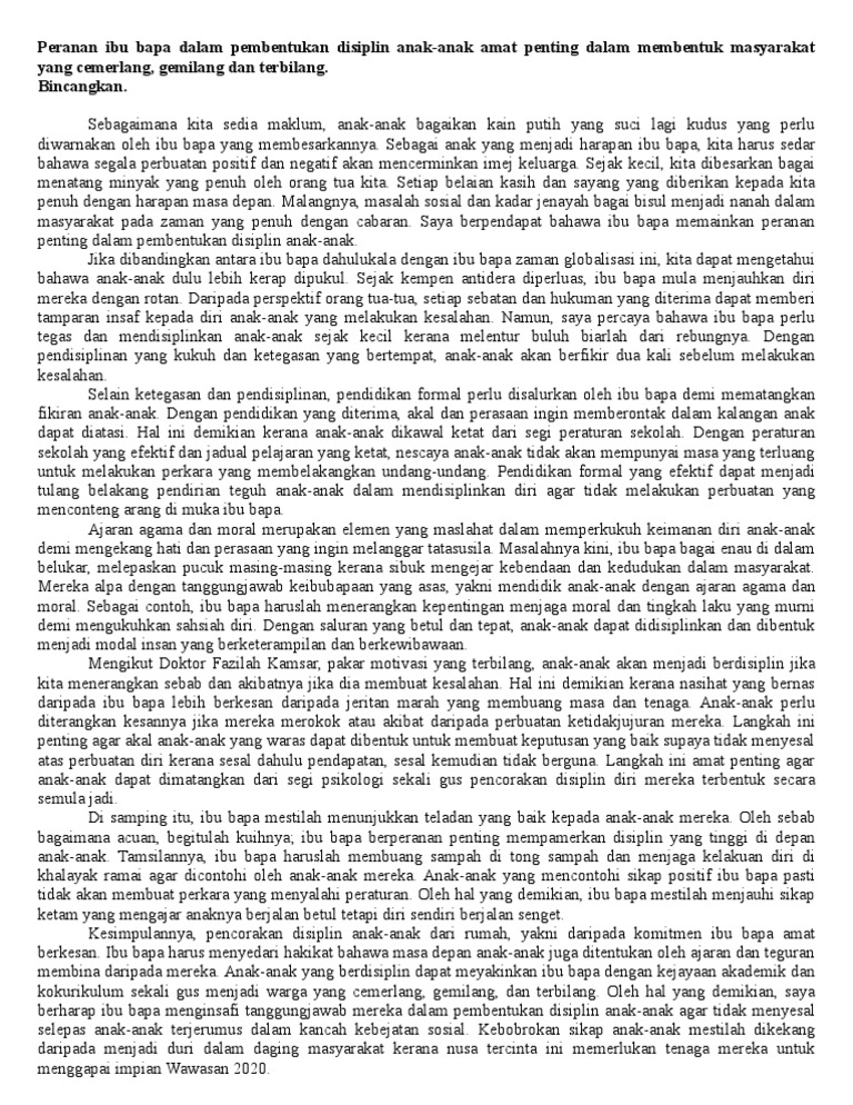 Contoh Karangan Spm Peranan Keluarga Mwmbentuk Remaja Berdisiplin
